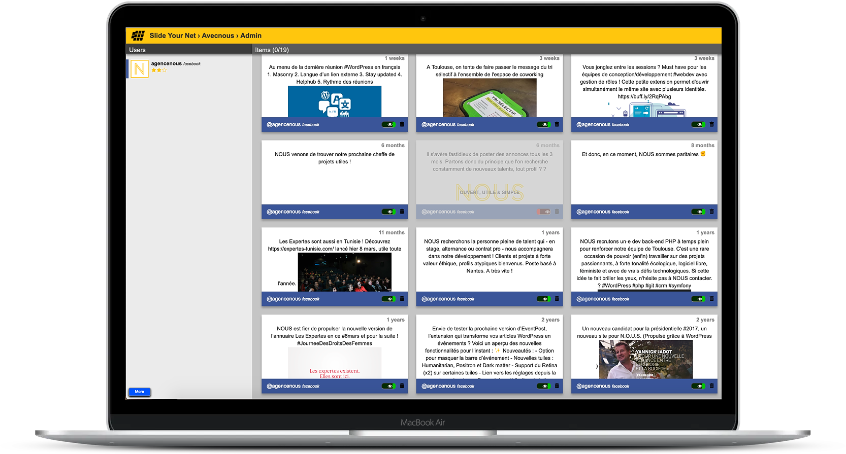 SlideYourNet vous permet de collecter l’ensemble des messages qui vous concernent, selon l’usage que vous en faites.